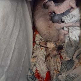 Piccolini Canadian Sphynx cercano una famiglia che possa amarli e coccolarli!!! Due cuccioli maschio blu e femmina colore crema dolcissimi e supper coccolone. Verranno consegnati con visita veterinaria completa ( libretto sanitario sverminazione e primo vaccino) nati il 20 gennaio 2026, pronti per andare in un'altra famiglia da primi giorni di aprile. Il genitore e di mia propieta, sono testati ed esenti da FIV FELV HCM. Non PEDIGREE. WhatsApp 3481123979 Filomena/ 348 0044817 Vira. Siamo a Livorno Toscana