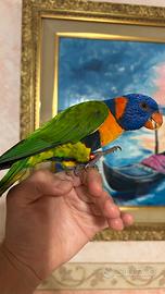 Disponibile stupendo lori arcobaleno maschio allevato a mano, piumaggio e imprinting ottimi, grande parlatore e giocherellone, estremamente abituato a tratti morboso nei confronti dell'essere umano, ideale per chi cerca un vero pappagallo per compagnia. Non essendo un pappagallo granivoro segue un'alimentazione adeguata basata prettamente da nettare ed estrusi, cedo per mancanza del giusto tempo da dedicargli, ovviamente ha regolare cites ed anello.