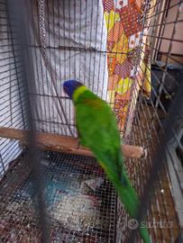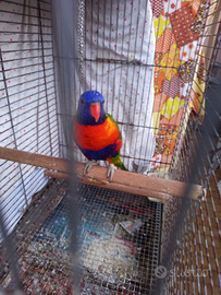 Vendo lori arcobaleno di circa 2 anni allevato mano,vendo mancanza di tempo,dice qualche parole