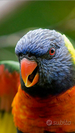 Scambio lori arcobaleno allevato a mano molto chiacchierone maschio ! Lo scambio solo con parrocchetto monaco allevato a mano femmina!