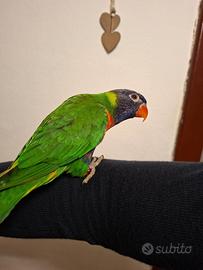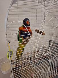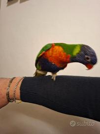 Cedo questo bellissimo lori arcobaleno di 5 mesi circa allevato a mano e molto giocherellone.