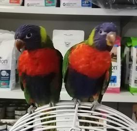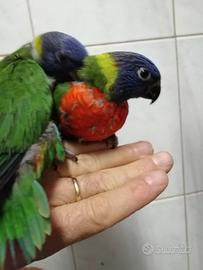 Disponibili lorichetto arcobaleno allevati a mano per informazioni contattatemi al numero 3389915558 disponibile gabbie e accessori.