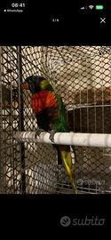 Vendo Lory Arcobaleno di 3anni. É maschio e lo cedo per fuga della femmina. Ha già riprodotto con successo. Cites e Microchip.ex allevato a mano. Ideale anche come animale da tenere in casa. Si cede insieme al mangime e volendo anche la gabbia (gabbia come nuova la cedo a un aggiunta di 50?) pappagallo e cibo prezzo 160? no sconti. Oppure scambio con un parrocchetti dal collare maschio no ancestrali,oliva.