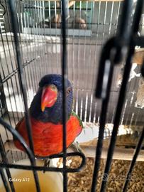 Cedo lory arcobaleno allevato a mano con cites regolare abituato al contatto umano molto dolce e coccolone e chiacchierone,di circa un anno, no scambi no perditempo con possibilità di darlo compreso gabbia