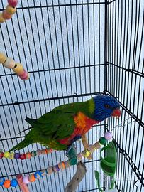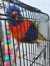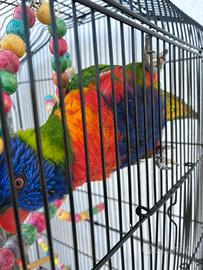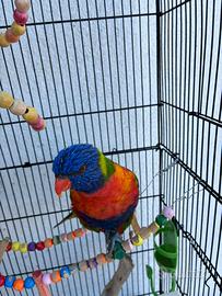 In vendita una bellissima lory arcobaleno insieme con gabbia a 150€ solo rimborso spese