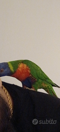 Vendo lory arcobaleno femmina con voliera di grandi dimensioni allevata a mano sa dire qualche parolina