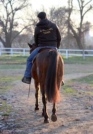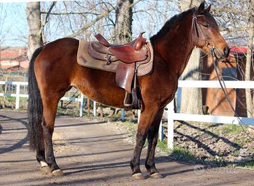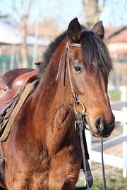 Proponiamo cavalla baia di 9 anni, dotata di un carattere vivace ma sempre sotto controllo, equilibrata e affidabile in ogni situazione. Soggetto sereno, privo di timori, estremamente gentile e disponibile, che si lascia gestire con grande facilità sia nelle attività da terra sia nel lavoro in sella.