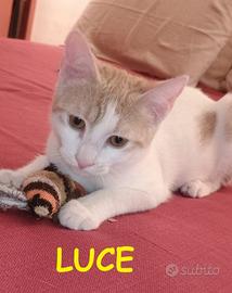 Io sono Luce, una micina dolcissima, un giorno per il grande spavento di essere inseguita mi sono rifugiata nel motore di una macchina e poi per miracolo, illesa sono scesa da tutt'altra parte ovviamente spaesata e in pericolo, sono stata recuperata e adesso ho assolutamente bisogno di una famiglia tutta per me perche' nel frattempo mi sono proprio abituata alla casa, alle coccole, al lettone e alla compagnia dell'umano , sono una micia solare, affettuosa, giocherellona, amo dormire con l'umano e non mi manca nulla per avere un futuro felice e in sicurezza. Chi Chiama per me?