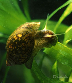 Lumache acquatiche Physa e Planorbarius di vari colori: Red (rosse), black (nere), marroni, grigie, azzurre, leopardate. Svolgono un'eccellente azione di pulizia dell'acquario e del laghetto o mini pond dalle alghe, residui di cibo in eccesso e pesci morti, aiutando a mantenere pulito l'acquario e rimuovendo le alghe e anche le incrostazioni di calcare dai vetri e dalle superfici. Non mangiano e non danneggiano assolutamente le piante acquatiche.