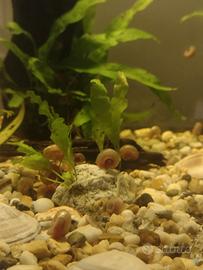 Vendo lumachine rosse con guscio color perla, ottime per pulire l'acquario e per decorarlo; resistenti all'acquario sia freddo che tropicale, vivono bene anche in vasi con piante in idrocultura (come ad esempio il photos ) senza necessità di essere nutrite perché si nutrono dei RESIDUI e non della pianta