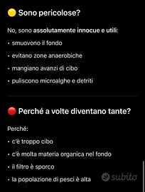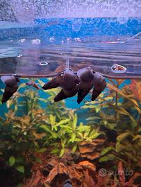 Molto utili per la gestione del fondo, vivono nel substrato e lo smuovono continuamente, ossigenandolo e prevenendo zone anaerobiche. Aiutano a mantenere il fondo pulito consumando residui di cibo e materiale organico.