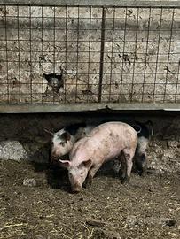 Vendo due maialetti di 4 mesi incrocio petrain e larg white pesano più o meno 30/40 kg l'uno un maschio e una femmina vendo in coppia prezzo non trattabile