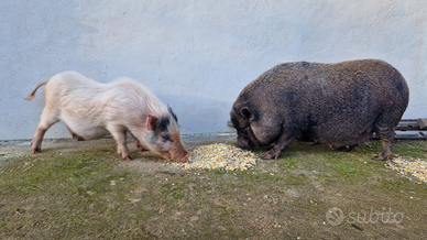 Disponibili per la prenotazione stupendi cuccioli di Mini Pig (Maialini Nani), nati il 6 febbraio. I piccoli sono frutto di un incrocio selezionato per bellezza e dimensioni ridotte, ideali come animali da compagnia.