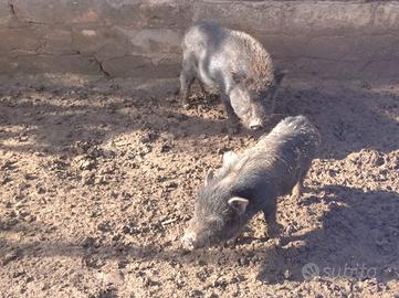 Vendo due maialini nani neri un maschio e una femmina di genitori diversi. Per info contattare il numero 3466634857 Francesco.