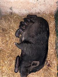 Maialini incrocio Vietnamita-Juliana 4 maschi 2 femmine 1 adulta.