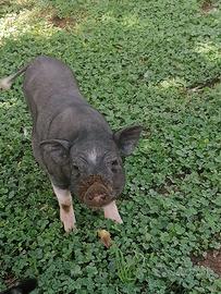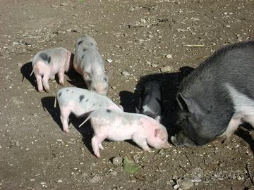 Maialini nani vietnamiti belli e sani , i più piccoli che si possano trovare, disponibili sia maschi che femmine . Disponibili anche adulti molto docili e mansueti. da adulti raggiungono un peso intorno ai 20-25 kg .Ottimi compagni da giardino e socievoli con le persone e con gli altri animali da cortile. Colori classici dei maialini vietnamiti sono rosa a punti neri oppure neri con pancia bianca. Disponibili tutto l'anno. 366-2523444