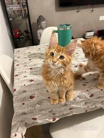 In vendita Maine Coon di tre mesi. Rimasti 2 cuccioli. Rosso maschio femmina black tortie. Ceduti vaccinati, sverminati e con certificazione di buona salute. Mamma e papà visibili e testati per fiv felv e principali malattie genetiche. Cerchiamo famiglie amorevoli che se ne prendano cura!!