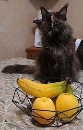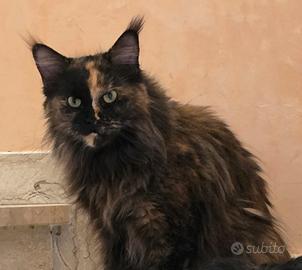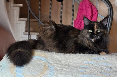 Morgana è una splendida gatta Maine Coon di quasi 5 anni, dal carattere dolce e molto legata all'essere umano. Con le persone: È affettuosa, viene quando chiamata e ama le coccole. Con chi rispetta i suoi tempi, crea un bellissimo legame. Con altri animali: Non è adatta alla convivenza con altri gatti e/o altri animali. Ha bisogno di essere figlia unica per stare davvero bene. Casa ideale: Senza altri animali Ambiente tranquillo Persone consapevoli e pazienti. Ha una rinite cronica che può causare starnuti e secrezioni. Cerco casa con famiglia seria per lei, perché, nel mio contesto con più gatti, non riesce più a vivere serenamente. È richiesto un rimborso spese di 200?. La sterilizzazione è obbligatoria. Morgana è in possesso di pedigree e libretto sanitario in regola. Verrà ceduta con regolare contratto di cessione. Solo persone realmente interessate e responsabili.