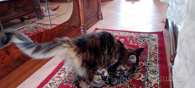 MAINE COON AMERICANA XXL cucciola di 4 mesi di 3,2 kg colore stabilito, cresciuta in casa e abituata a lettiera e tiragraffi, con doppio ciclo vaccinale e antiparassitario completo, libretto sanitario e pedigree W.C.F. mondiale, Mamma , test genitori HCM n/n e analisi genetiche che non portano nessuna mutazione, ecocardio regolare esenti da patologie, cucciola visibile a qualsiasi orario, per maggiori info whatsapp 3395462826 (a richiesta possibilità di consegna a domicilio)