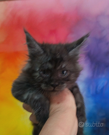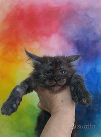 Maine Coon Black Smoke con pedigree Alta Genealogist, disponibile da subito. Un vivace tenerone, vissuto in casa (no gabbie!) a contatto con persone,bambini,cagnolini e abituato a bagnetto e rumori domestici. I genitori hanno tutti i test genetici a posto e gli ecocardio perfetti ma per la vostra tranquillità viene data una garanzia di un anno sulle malattie della razza. Il gatto può essere ceduto anche con pedigree aperto.il prezzo si riferisce al gatto ceduto da compagnia (sterilizzato)