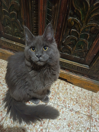 Maine Coon Blu solid, maschio, 5 mesi con pedigree disponibile da subito. Un vivace tenerone, vissuto in casa (no gabbie!) a contatto con persone,bambini,cagnolini e abituato a bagnetto e rumori domestici. I genitori hanno tutti i test genetici a posto e gli ecocardio perfetti ma per la vostra tranquillità viene data una garanzia di un anno sulle malattie della razza. Il gatto ha un bel profilo e può essere ceduto anche con pedigree aperto.il prezzo si riferisce al gatto ceduto da compagnia e gia sterilizzato (prezzo medio sterilizzazione 160 Euro)