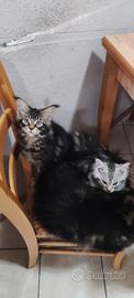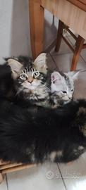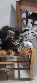 Vendo bellissimi gattini di razza Maine Coon nati il 15 01 26 originali... Mamma e papà visibili di mia proprietà.... I gattini sono già svezzati e abituati alla lattiera... No pedigree.. Un maschietto e due femminucce.. Per qualsiasi informazione non esitare a contattarmi..