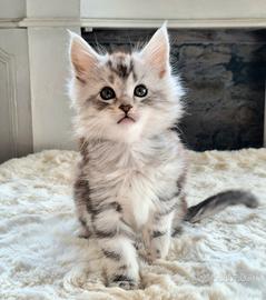 Allevamento di Maine Coon con affisso riconosciuto Anfi, con sede in Liguria e possibilità di consegna a Milano I nostri esemplari sono stati selezionati tra i migliori allevamenti. Genitori esenti dalle principali malattie genetiche. I gattini sono nati in ambiente famigliare,niente gabbie,capannoni,solo grande ambiente domestico con libertà di giocare con i membri della famiglia. I gattini saranno affidati alla nuova famiglia con: Vaccino trivalente completo Sverminati Microchip Pedigree Anfi Libretto sanitario Certificato di buona salute Documenti genetici genitori Beppe 3402385099 Istagram imperialkey
