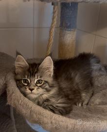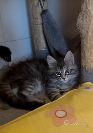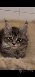 Disponibile cucciola di Maine coon color black silver nata il 24 febbraio e pronta per una nuova famiglia . Viene ceduta sverminata, svezzata , abituata all'uso della lettiera e del tiragraffi , perfettamente socializzata e desensibilizzata . Cresciuta con tanta passione e dedizione sia dal branco peloso che dai componenti della famiglia darà tante soddisfazioni e amore. Genitori di mia proprietà esenti malattie ereditarie , visibili in foto ed in loco . Cedo esclusivamente a persone serie ad euro 650 , no perditempo grazie , per altre info o foto e video sono a disposizione ora ed in futuro ne abbiate bisogno . contatto whatsapp al 3478033284 grazie