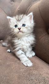 Allevamento con affisso Anfi, attivo nella selezione estetica e caratteriale del Maine coon da oltre 15 anni dispone di stupendi cuccioli di altissima genealogia estera . Il piccoli sono nati il primo marzo da genitori fiv/felv negativi testati per le principali patologie di razza HCM , SMA, PKdef N/N , genetica del gruppo sanguigno, ecocardiogramma perfetto . Saranno ceduti doppiamente sverminati con ciclo vaccinazioni complete, libretto sanitario, copie test dei genitori , kit prima pappa, passaggio di proprietà, contratto di cessione e pedigree Anfi (si valuta pedigree aperto solo per piccoli allevamenti che conoscono il valore di queste linee) I nostri cuccioli nascono e crescono in casa a stretto contatto con noi , sono svezzati con cibo di prima qualità , abituati a lettiera e tira graffi ... e fin da piccoli al contatto umano e alle coccole per esaltare ancora di più l'indole pacifica e affettuosa di questa fantastica razza. Contattateci per qualsiasi altra informazione o chiarimento, abbiamo altre cucciolate . Altre foto di cuccioli e genitori sul sito del nostro allevamento mainecoonocchidorati e sulla nostra pagina Instagram Elisa_mainecoonocchidorati 3401210329