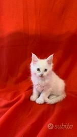 Miao! Io sono Albus! Sono un dolce cucciolo di Maine Coon con rari occhi blu. Sono nato il 22.02.2026. Test genetici ok, fiv felv negativi, eco cardio ok, eco addome ok. Ho i vaccini, la sverminazione, e il pedigree AFeF. Purtroppo sono sordo ma il mio stile di vita non sarà compromesso se vivrò in appartamento e mi adattero' magnificamente. Mi adotti? Sono a Brescia.