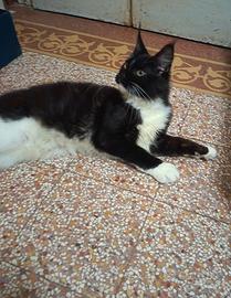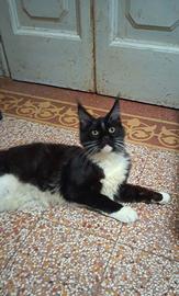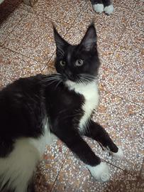 Maine Coon Tuxedo black smoke con bianco, alta genealogia, viva issimo e grande (5 + kg x 5 mesi!), molto vivace ed energico, affettuosossimo. Genitori con test genetici n/n ed eco cardio sempre regolare. Cresciuto liberamente in casa e abituato al bagnetto, ai rumori domestici, a persone e cagnolini, Usa da sempre tiragraffi e lettiera. Credibile con contratto da compagnia o pedigree aperto a persone competenti. Astenersi perditempo e sprovveduti che pensano di pagare un Maine Coon poche centinaia di euro!