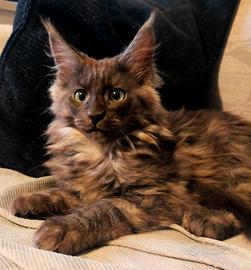 Maine Coon femmina, disponibile a dicembre, vaccino e trattamento antiparassitario. Carattere molto mite e affettuoso, black Smoke, come la mamma nell' ultima foto. Pedigree afsi Visibile a Bra 3293534475