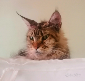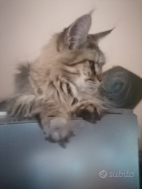 Giovane femmina Maine Coon, colors tabby, affettuosissima e robusta. Five felv negativa, test arassiti e guardian negativity.