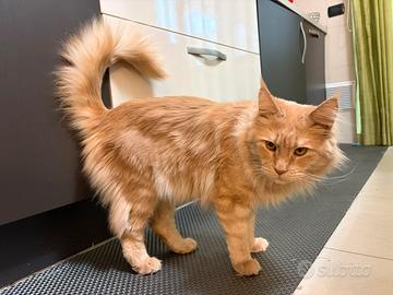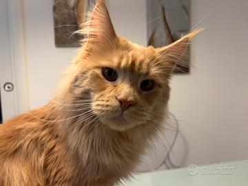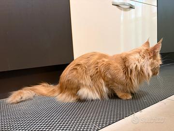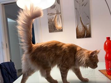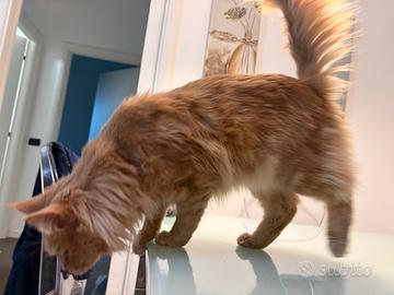 Maine coon giovane, 1 anno e 4 mesi, intero, mantello rosso blotched tabby, vaccinato, microchippato, cedesi a rimborso spese indicato per problemi familiari e organizzativi. Si trova in prov di Varese