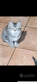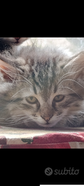 Per mancato ritiro cedesi gattino bellissimo a pelo medio lungo , figlio di mamma Maine Coon e papà persiano . Nato da una cucciolata di sei gattini il 9 ottobre , abituato a lettiera e tiragraffi, svezzati sia con umido che croccantini per piccoli, usa la lettiera, abituato anche al giardino. Si vede com trattamento antiparassitario ( Len ) e trattamento preventivo con Frontline Buon carattere, affettuoso, sono amanti gatti e no perditempo. NO AFFARISTI. È TUTTO SCRITTO.