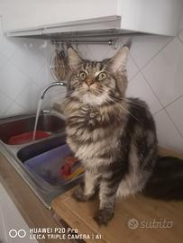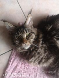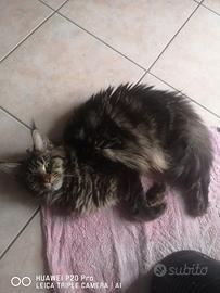 Si cede gatta maine coon femminuccia brow tabby pedigree Afsi vaccini e microchip causa trasferimento.. Ha 9 mesi.. 500 euro.. Abituata a simili e cani...