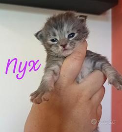 L'allevamento Nordic Giants presenta splendide cucciole di Maine Coon nate l'11/04/2026, disponibili alla prenotazione. La cessione avverrà al compimento del terzo mese, dopo la prima metà di luglio, nel rispetto dei tempi di crescita. Disponibile 2 femminucce 1 blue crema e 1 blue crema tabby . La cucciole verranno ceduti con: -Pedigree ENFI da compagnia -Contratto di cessione -Libretto sanitario -Microchip termico -Doppio vaccino -Test feci -Certificato veterinario di buona salute -Kit cucciolo Figli di genitori testati e controllati periodicamente. Cresciuti in ambiente familiare, abituati alla lettiera, al tiragraffi, ai bambini e alla convivenza con altri gatti. Visite solo su appuntamento per tutelare il benessere dei cuccioli. Allevamento in provincia di Bergamo, possibilità di consegna di persona in Italia. Per informazioni contattare tramite messaggio privato.