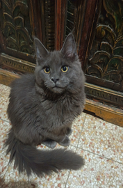 Maine Coon Blu solid, maschio, 5 mesi con pedigree disponibile da subito. Un vivace tenerone, vissuto in casa (no gabbie!) a contatto con persone,bambini,cagnolini e abituato a bagnetto e rumori domestici. I genitori hanno tutti i test genetici a posto e gli ecocardio perfetti ma per la vostra tranquillità viene data una garanzia di un anno sulle malattie della razza. Il gatto ha un bel profilo e può essere ceduto anche con pedigree aperto.il prezzo si riferisce al gatto ceduto da compagnia.
