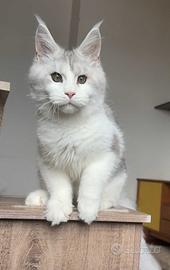 Disponibile un dolcissimo cucciolo maschio di 6 mesi, Maine Coon (bicolore), di ottimo tipo e struttura.