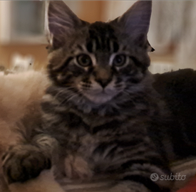 Disponibile ultimo cucciolo di Maine Coon brown tabby, nato il 14 novembre 2025. Verrà ceduto con libretto, ciclo vaccinazioni completo, sverminato, svezzato, educato all'uso della lettiera e del tiragraffi.