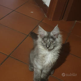 Cucciolo Maine coon nata il 30 novembre vaccinata e sverminata molto buona ama molto i bambini abituata alla lettiera molto coccolona
