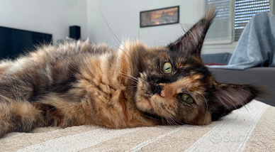 Cedo Maine coon femmina già sterilizzata nata il 29/2/24 Pedigree anfi Hcm nn Fiv/felv negativi Ecocardio nella norma Test genetici negativi Molto coccolona Abituata alla presenza di altri gatti