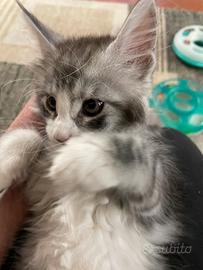 Allevamento con affisso Anfi vende splendida cucciola femmina di Maine Coon nata il 15/12/2025 . Alta genealogia genitori testati con Fiv/Felv/Hcp negativi . Abituata ai cani e altri animali . Molto affettuosa . Si cede con vaccinazione, microchip e petigree libero