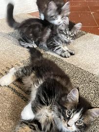 Allevamento con affisso Anfi vende splendidi cuccioli maschi di Maine Coon nati il 14/02 . Alta genealogia, genitori testati Fiv/Felv/Hcg negativi. Abituati ai cani . I nostri cuccioli vivono in simbiosi con noi . Molto affettuosi e giocherelloni. I cuccioli saranno ceduti con vaccinazione-microchip e petigree libero.