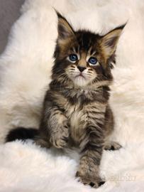 Cucciola Maine Coon black ticked tabby, nata il 22/01, disponibile da fine aprile.