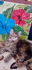 MAINE COON femmina brown tabby cresciuta in casa abituata a lettiera e tiragraffi, razza pura di altissima genealogia discendenza campioni maine coon statunitensi, mamma Maine Coon Americana, la cucciola di tre mesi sarà ceduta con doppio ciclo vaccinale completo, trattamenti vermifughi intestinali, doppia sverminazione, antiparassitari esterni, visita di controllo, libretto sanitario, pedigree W.C.F., genitori visibili per info, foto e video precedente cucciolata tel. 3395462826 claudio (a richiesta possibilità di consegna a domicilio)