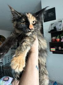 Cucciola nata il 22/12/25 Black tortie = tricolore Nata in allevamento viene veduta con pedigree wcf con segnati test genetici dei genitori n/n abituata a rumori di casa perché vive al contatto con noi a 360 Vive con bambini altri gatti e cani di piccola taglia....svezzata con ottimo cibo e croccantini....tiragraffi e lettiera!!! È già pronta con tutti i vaccini trivalenti e sverminata con tre cicli!!!! Contratto da compagnia!!!! siamo un allevamento amatoriale amante di due razze alleviamo con amore e con passione ??? perciò abbiate rispetto per ciò che facciamo no affaristi e non è cedibile in regalo!!!