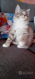 Maine Coon cuccioli, altissima genealogia discendenza da antenati campioni internazionale, nati e cresciuti in casa, 2 mesi 1,8 kg, già abituati alla lettiera, saranno ceduti a vaccinazioni avvenute, con libretto sanitario e pedigree World Cat Federation (WCF), Maine Coon precedente cucciolata premiati alle mostre feline, genitori visibili: la mamma Maine Coon pura Americana di 8,5kg - il papà europeo di 13kg, 1.200 euro per info, foto e video precedente cucciolata: WhatsApp 3395462826 possibilità di consegna a richiesta anche a domicilio.
