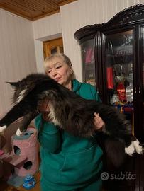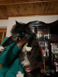 Maschio 11 mesi nome in pedigree Pinkerton , color Black with white ( papa il nostro campione Apollo pesa 13kg ),da compagnia,nato in 20.04.25 sarà con ,pasaporto microchip, 2 vaccine trivalente, 1 vaccino antirabic, 2 sverminazioni, due profilassi contro le pulci e zecche, genitori testati e negativi per le malattie genetiche come HCM, SMA, Pkdef. Un cucciolo molto dolce socievole coccolone, addestrato alla lettiera , già sterilizzato solo da compagnia.