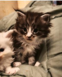 Cuccioli di Maine Coon nati il 10/02/2026 Verranno ceduti vaccinati e sverminati al compimento del 3 mese di età. Genitori con pedigree Anfi esenti da malattie genetiche e con ecocardiogramma nella norma.